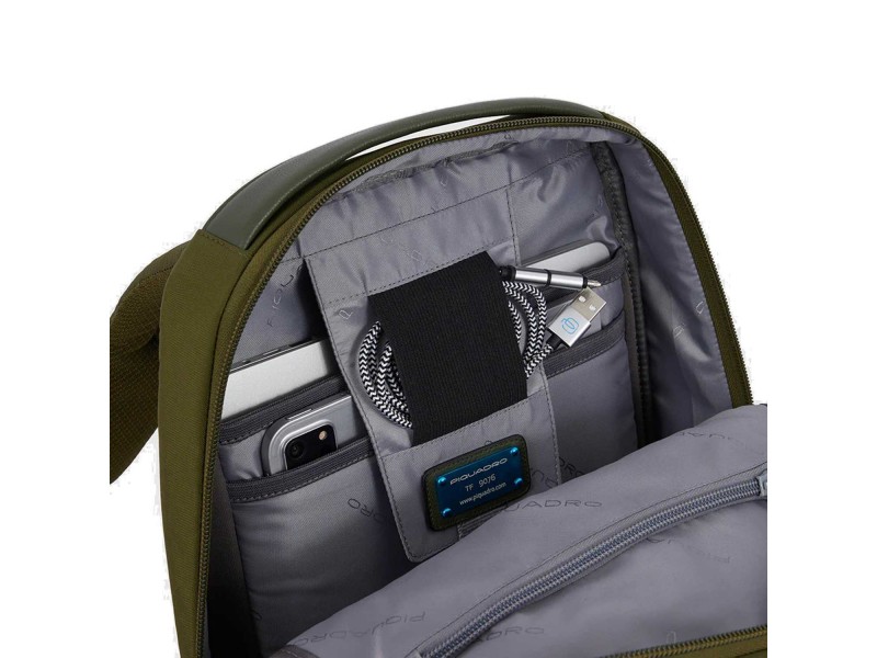 Zaino per computer 14 e iPad® in tessuto riciclato e pelle con tasche per AirPods® e ombrello, protezione anti frode RFID