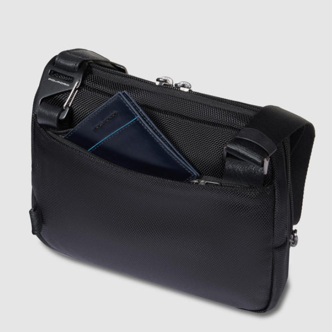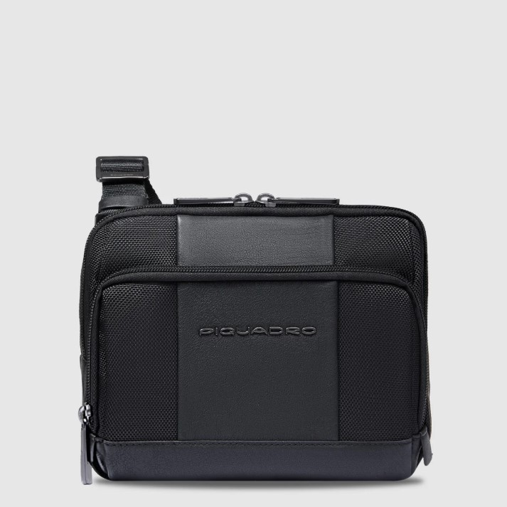 Tracolla uomo porta iPad®mini in tessuto riciclato e pelle con tasca per AirPods®, schermato con protezione RFID