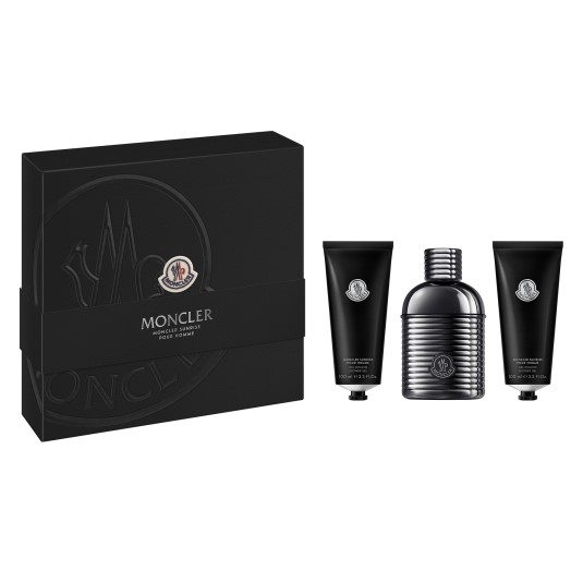 Moncler Pour Homme Eau de Parfum Set con gel doccia e shampoo. Fragranza aromatica legnosa, Moncler Sunrise Pour Homme si apre con un’esplosione di freschezza data dal pepe rosa.