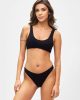 Costume da bagno, collezione SS21 del Mood Visionary dose. Bikini Donna di colore nero, modello Top con slip fianco Americano fisso, in tessuto Lycra goffrata. Capo dotato di imbottitura interna estraibile.
